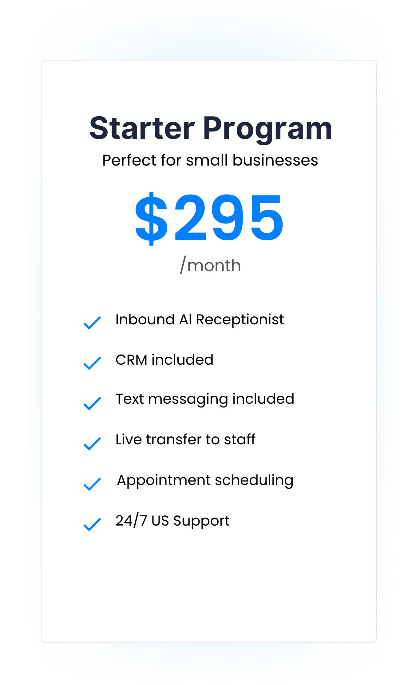 A Monthly subscription keeps your AI employee working properly and always updated. Includes 24/7 U.S. Tech Support and ongoing customization.